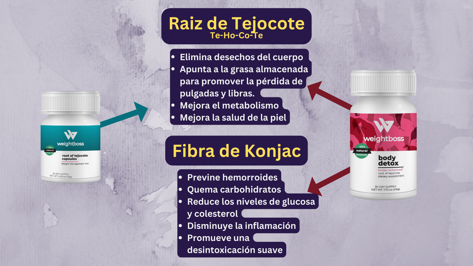 Tras 6 años de desarrollo , hemos perfeccionado nuestra fórmula Body Detox para MAXIMIZAR sus beneficios y alcanzar sus objetivos de bienestar. ¡Nuestra mezcla patentada de fibra de Konjac y raíz de tejocote lo ayudará a alcanzar sus objetivos de pérdida de peso y salud en cuestión de meses!